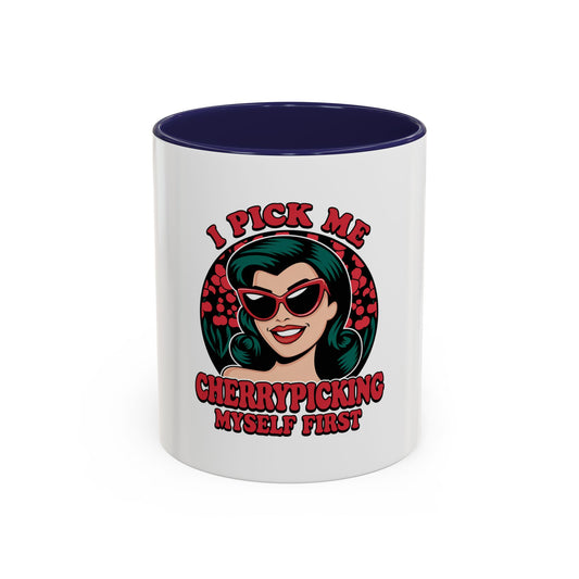 Cherry-Picking Accent Coffee Mug - Fun Gift for Coffee Lovers, Pink Handle Mug, Self-Care Reminder, Retro Design, Perfect for Birthdays,